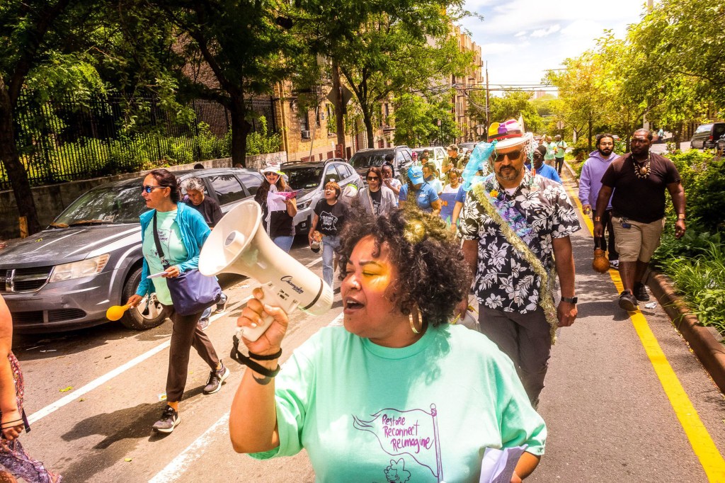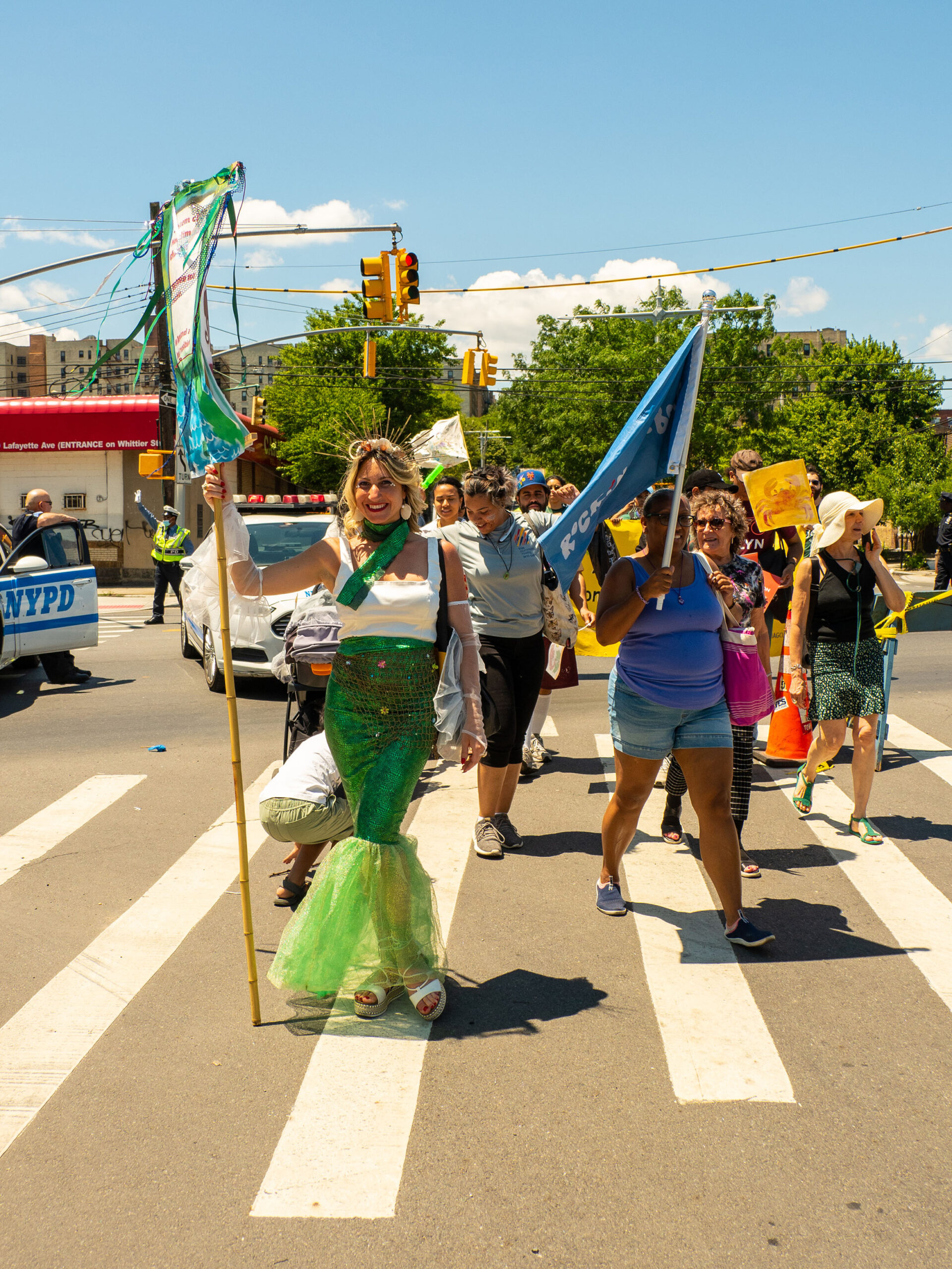 It’s a parade to celebrate, and also so people come together to advocate and fight for environmental issues in Hunts Point. It reminds me a lot of Puerto Rico, because there’s protests all the time there, right? I remember meeting some tourists one time in San Juan, they were asking, “Is there a festival going on? There’s music and the people dancing on the street, and shouting and singing.” And it was like, “No, that’s actually a protest.” It’s this way of being angry and advocating for yourself and for your community.
