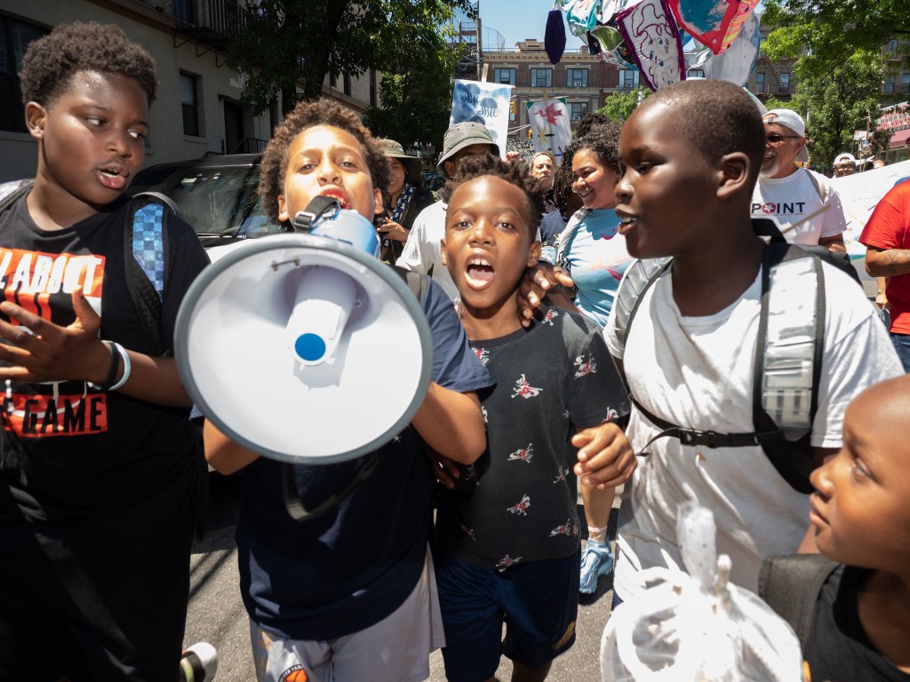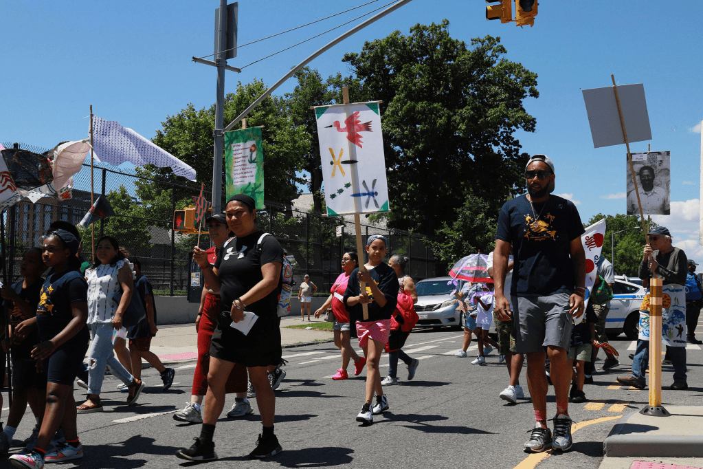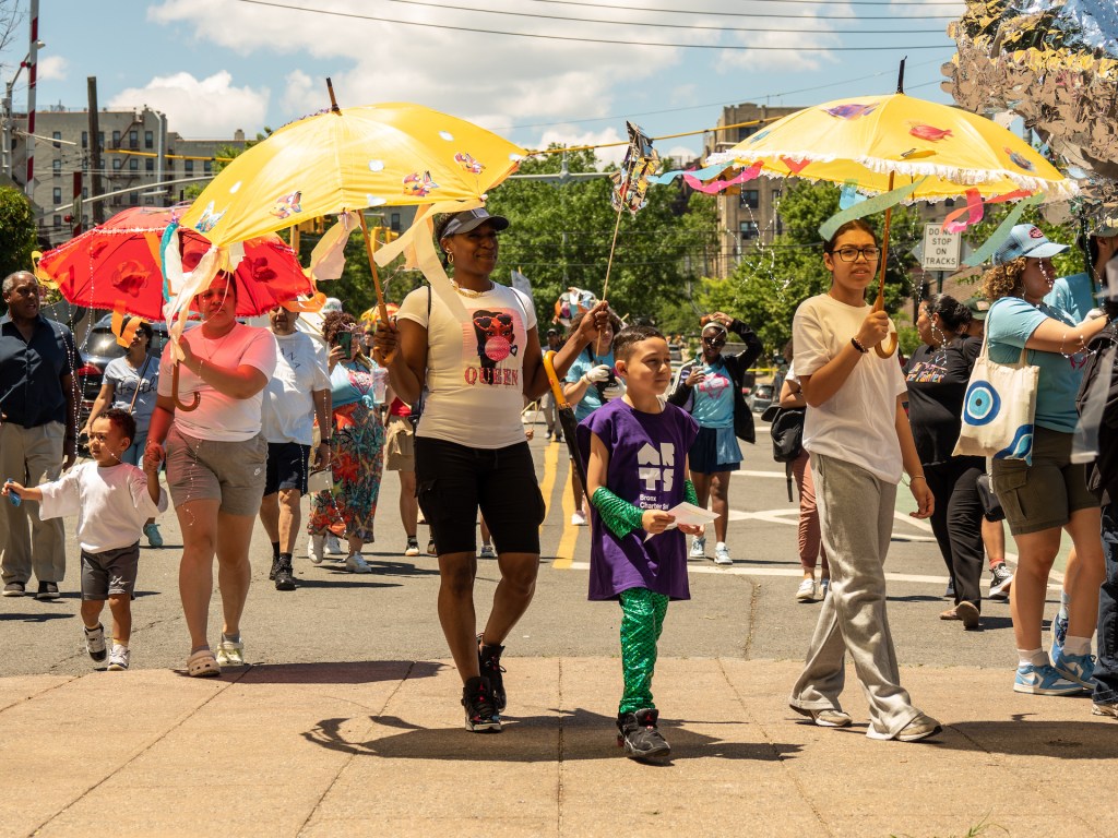 Students and parents from the Bronx Charter School for the Arts marching in the 2024 Fish Parade. Photos by Osjua Newton