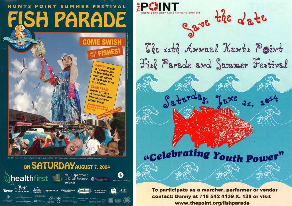 The South East Bronx Community Organization (SEBCO), with which THE POINT had deep ties, started a summer festival in 1990 that moved around to different locations and included live performances and food competitions. In 2004, inspired by Brooklyn’s Mermaid Parade, the first Fish Parade took place in collaboration with SEBCO’s summer festival, the Fulton Fish Market, and many other local organizations, schools, and businesses.