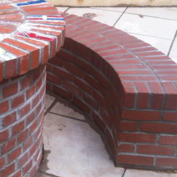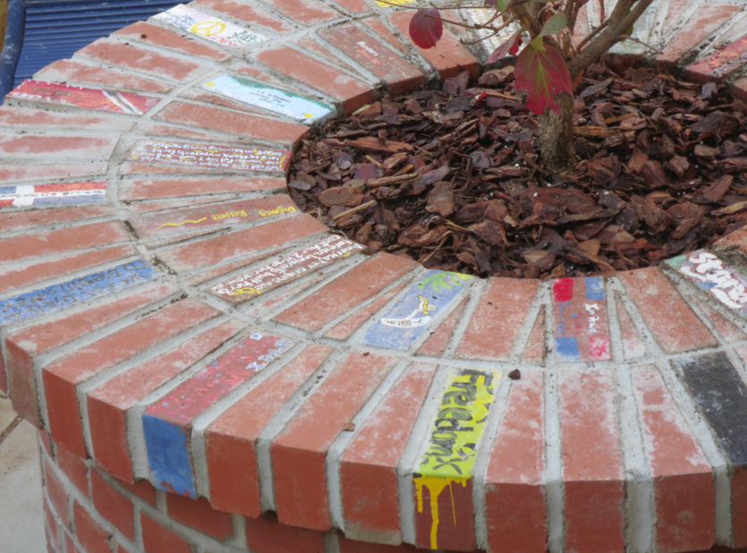 A round table has no head or foot, no person who sits at it can claim a more important position than the other; thus making everyone equal in status. Therefore, the artwork becomes a symbol of equality for all citizens regardless of their immigration status. Throughout the tabletop and the wall one finds several bricks hand painted by immigrants in response to the original anti immigrant messages. In the middle of this round table there is a space for a perennial plant. The plant is a symbol of life. The table is a place of dialogue, conversation, and thought about the immigration issue.