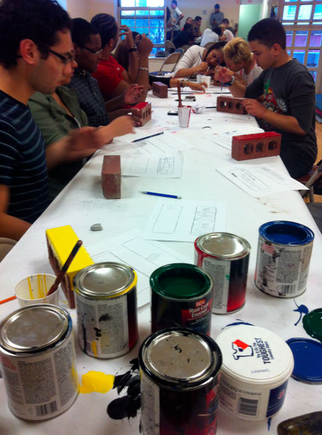Former Congressman José E. Serrano from the Bronx, took the task to collect all the bricks. Bill Aguado organized this art project.