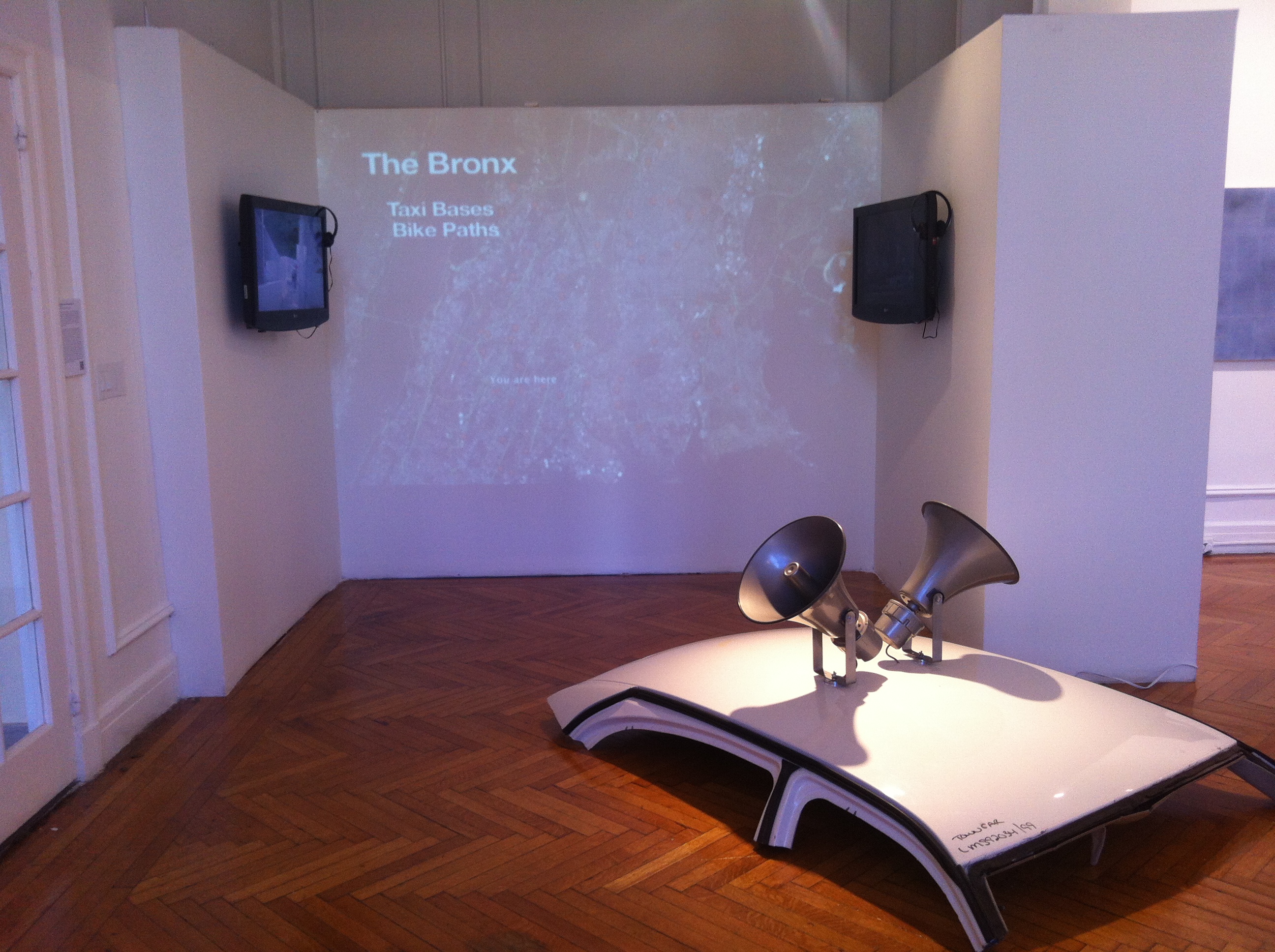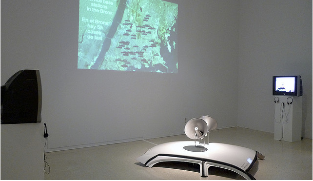“Ramos Fermín has engaged in deconstructing an element of local space to investigate just one detail of modernity and globalization. He has not done so as a traditional artist, walking the streets of the Bronx, getting lost in the vernacular of the city to generate creative musings that reflect one person’s vision. Instead he has worked as an investigative journalist or documentary filmmaker. Ramos Fermín has logged several hours of video interviews with livery cab drivers, he has visited several dispatch offices, diners, gas stations, car repair shops… the local spaces of the drivers. Over several months, he has engaged with the livery cab community to learn of its reality, document it and create an engaging portrayal that is both attentive and serious. The final outcome of his investigation is a rich installation that attempts to capture the hardship and diversity of the trade. And the encompassing device of the installation is the live radio feed from cab livery dispatches surrounding the gallery.”